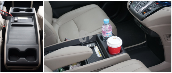 먼저 신형 오딧세이에는 수납 공간이 매우 많고 큼직큼직하다. 기존의 탈착식 센터콘솔은 고정식으로 바뀌었다. 센터콘솔은 스마트폰 무선충전장치뿐만 아니라 각종 수납 공간, 내부 조명등, USB, HDMI, 12V 전원 소켓을 탑재해 기능성이 늘어났다. 컵홀더는 무려 15개가 있다. 2열 도어의 컵홀더는 폭이 좁아 500ml 생수병이 꽉 들어차지만, 나머지 컵홀더 크기는 넉넉한 편이다.