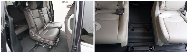 폭 넓은 시트 활용성도 특징이다. 2열에 매직 슬라이드 시트를 이용하면 승차 인원 및 이용 상황에 맞춰 다양한 시트 배치가 가능하다. 2열 시트는 중간 시트를 제외하고 전후 좌우 이동이 가능하다. 2열의 중간 시트를 떼고 양쪽 시트 옆에 부착된 레버를 위로 당기면 시트가 레일을 따라 좌우로 움직인다. 덕분에 2열 시트를 한 쪽으로 밀어 놓으면 카시트를 탈착할 필요없이 3열 승하차가 가능하다.