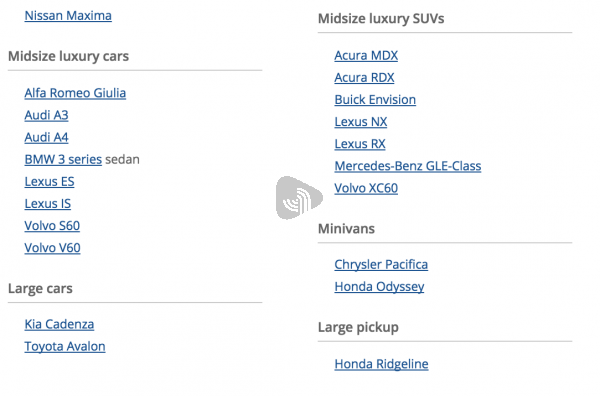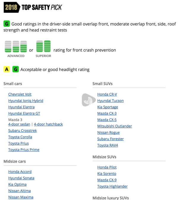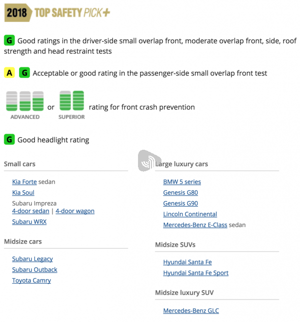 현대차그룹에 이어 스바루가 네 차종(임프레자, WRX, 레거시), 벤츠는 두 차종(E클래스, GLC), 토요타 캠리, BMW 5시리즈, 포드 링컨 컨티넨탈이 최고 안전한 차로 선정됐다.