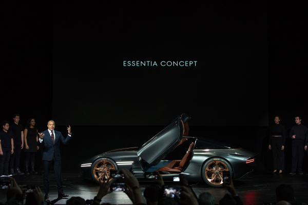 제네시스 사업부 맨프레드 피츠제럴드 전무는 “제네시스는 고급 자동차 브랜드로서 모두가 열망하고 선망하는 차를 선보임으로써 사람들의 삶에 활력과 영감을 불어 넣어주고자 한다”라며 “이에 기술적으로도 우수할 뿐 아니라 일상생활에서 누리는 모든 것들을 자동차 안에서도 불편함 없이 이용할 수 있도록 하는 미래형 커넥티비티 기술을 탑재한 전기차 기반 GT 에센시아 콘셉트를 선보이게 됐다”고 말하며 개발 배경을 설명했다.