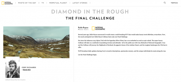 롤스로이스 컬리넌의 테스트 영상은 내셔널지오그래픽 홈페이지(https://www.nationalgeographic.com/rollsroycecullinan)와 롤스로이스 소셜미디어 계정인 (www.Rolls-RoyceMotorCars.com)에서 볼 수 있다.