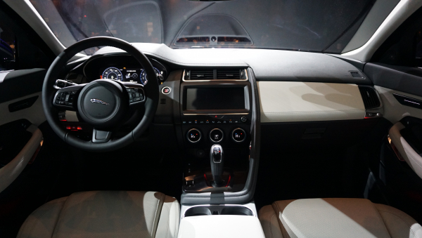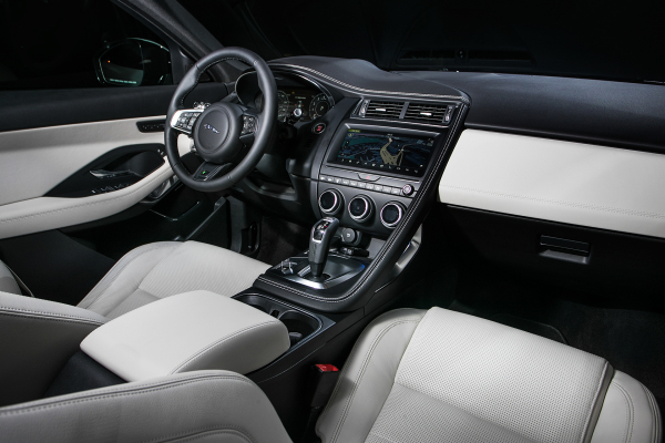 E-PACE의 실내는 F-TYPE과 동일한 그랩 핸들과 중앙 콘솔을 통해 스포츠카의 느낌을 살렸다. 또 운전자가 기어 시프트 및 모든 컨트롤을 쉽게 제어할 수 있도록 디자인했다. 인테그럴 링크(Integral Link) 후방 서스펜션 구조 덕분에 가능해진 널찍한 적재 공간에는 대형 캐리어, 유모차 등 부피가 큰 짐도 실을 수 있다.