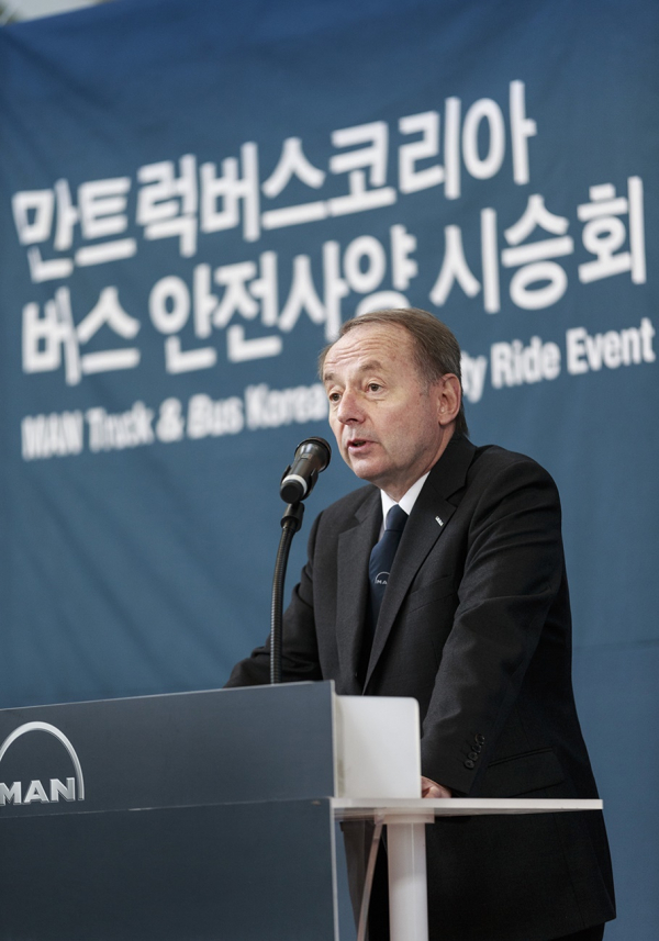 한편 이날 행사에는 막스 버거 만트럭버스코리아 사장을 비롯, 독일에서 방한한 만그룹 전문 드라이빙 인스트럭터가 참석해 정부 관계자, 유관 기업 및 MAN 고객 200여명에게 MAN 버스의 첨단 안전 장치에 대한 이해를 도왔다. 이번 행사는 20일, 21일 양일간 진행된다.