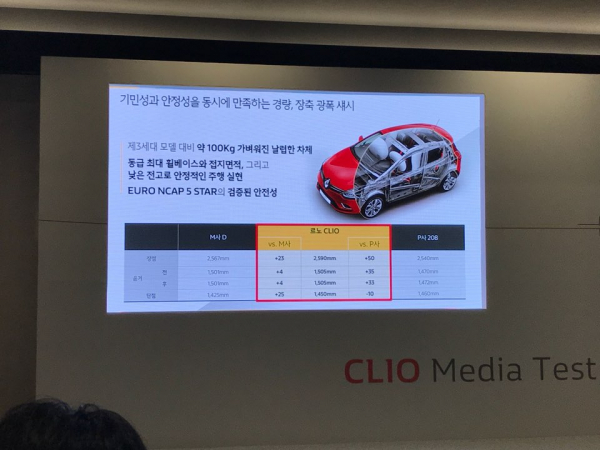 르노삼성자동차 마케팅 담당 방실 이사는 “오래동안 소형차를 만들어온 르노자동차의 클리오는 기존의 소형차와 다른 매력이 있다”며 “컴팩트카의 기준을 완전히 새롭게 적립한 차”라고 말했다.