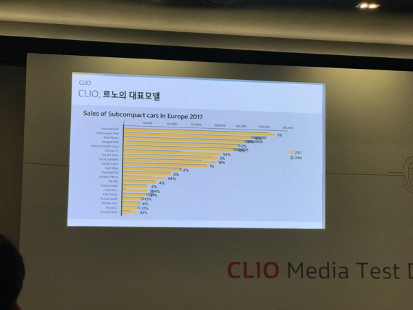 르노삼성자동차는 클리오가 유럽의 소형차 시장을 이끄는 차종이라고 설명했다. 2017년 판매량에서 클리오는 1위를 차지했고 폭스바겐의 폴로, 포드의 피에스타 순서를 기록했다.