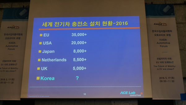 국내 전기차 충전소는 2017년 8월 기준으로 약 1995곳에 불과하다. 이 마저도 관리가 잘 안돼 사용할 수 없는 경우가 많다. 한양대학교 미래자동차공학과 선우명호 교수는 “과연 전기차를 살 수 있을 정도의 충전소는 갖추고 있는가 생각해봐야 한다”며 “전기차를 타고 충전하러가면 5군데 중 3군데는 망가져서 못 쓴다. 충전소 설치 만은 정부가 적극적으로 나서야 한다”고 말했다.