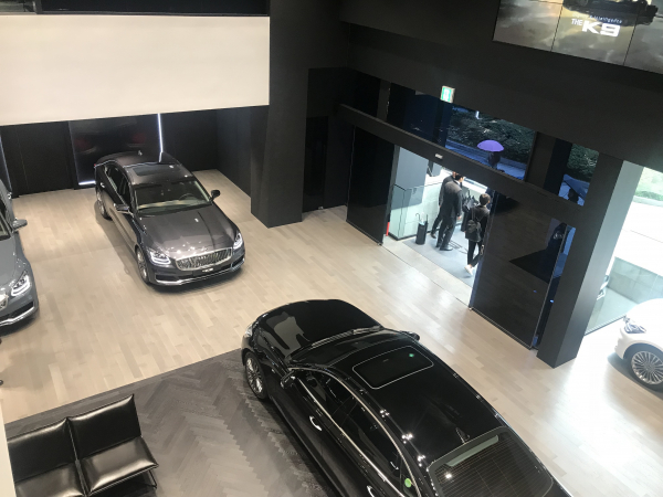 사흘 연속 여름 장맛비 같은 봄비가 내리는 날 조금 특별한 체험을 하러 기아자동차 더 K9의 전용 전시관 ‘살롱 드 K9’에 방문했다. 이날 목적은 오로지 하나였다. K9에 들어간 오디오 느껴보기. 전시관 1층에 들어서니 더 K9 차량 여러 대와 검은 정장을 입은 안내원들이 맞이한다.