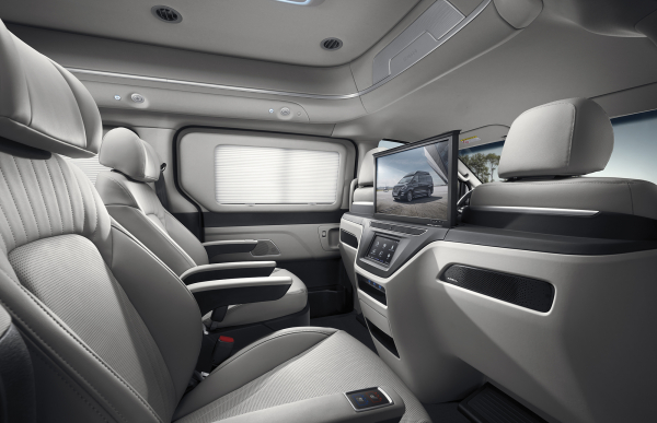 6인승 모델에는 21.5인치의 전동 슬라이더 모니터와 8인치 터치스크린 및 휴대폰 수납함을 적용한 ‘멀티미디어 파티션’을 1열과 2열 사이에 배치했고 크렐(KRELL)의 오디오와 리무진 전용 시트 등을 적용했다.