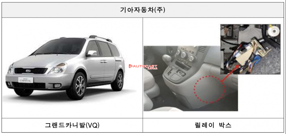 기아자동차 그랜드 카니발(VQ) 21만2,186대는 에어컨 배수 결함으로 리콜한다. 에어컨에서 발생한 수분이 차량 내부의 전기장치(릴레이 박스)로 떨어져 전기적 쇼트가 발생하고 이로 인해 화재가 발생할 수 있는 것으로 확인됐다.
