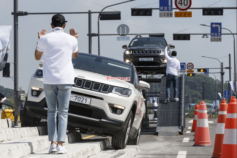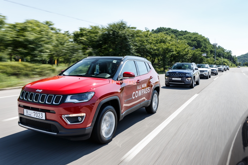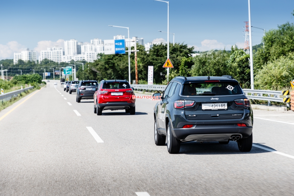 시승을 하기 위해 20여 대의 신형 컴패스가 일렬로 서 있는 파주 롯데프리미엄아울렛 주차장으로 향했다. 시승 코스는 온/오프로드 코스를 포함해 도심 주행 중 흔히 경험할 수 있는 장애물로 구성된 도심 장애물 코스, 지프의 4x4를 경험할 수 있는 오프로드 구조물 코스 등으로 구성됐다. 정체 구간, 고속 도로 구간, 국도, 와이드 구간 및 산길 등을 짧지만 다양하게 주행할 수 있었다. 2인 1조로 돌아가며 운전대를 잡았고 동승자석에 먼저 자리를 잡았다. 동승자석에 앉아 파주 롯데프리미엄 아울렛을 출발해 자유로를 거쳐 북부기상관측소로 가는 42km코스를 체험했다.