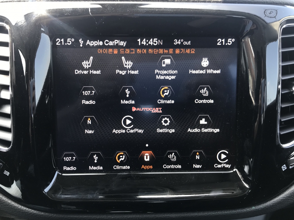 다만 동급의 다른 차량들과 비교하면 얘기가 조금 달라진다. 어느 정도의 투박함은 남겨두는 것이 오프로드 감성과 어울린다면 허용할 만한 수준이지만 실내 소재가 아주 고급스럽다거나 마감 품질이 깔끔한 편은 아니다. 정사각형에 가까운 8.4인치 디스플레이와 이를 두껍게 감싸고 있는 피아노 블랙 베젤은 첨단 또는 미래 지향적인 느낌과는 조금 거리가 있다. 이날 시승한 모델보다 하위 트림인 론지튜드 모델은 7인치 디스플레이가 들어간다. 특히 디스플레이를 조작할 때 대부분 한글화가 되어 있지만 설정 초기 화면 등은 모두 영문으로 남아 있어 완성도가 다소 떨어져 보인다. 이 밖에 디스플레이 아래 쪽에 위치한 공조장치 조절 다이얼과 버튼은 수직으로 배치돼 운전 시 조작이 불편하다.