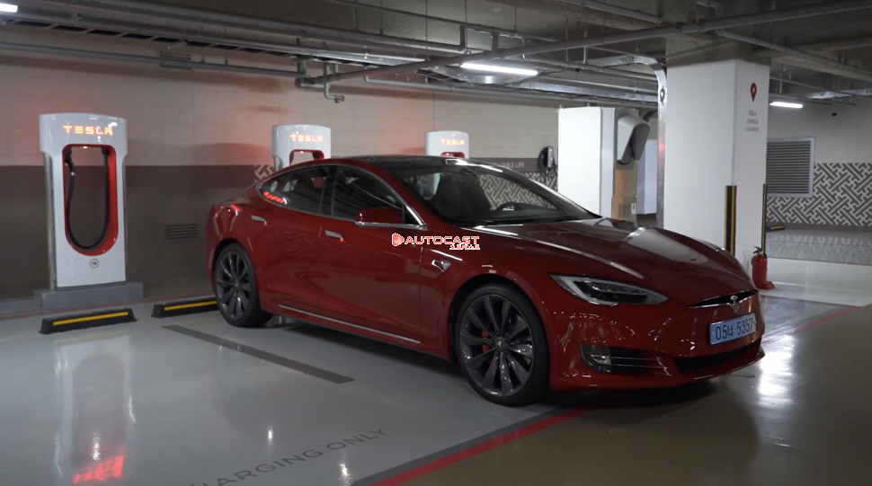 테슬라 모델 S P100D는 환경부 기준 1회 완충시 424km 주행 가능하다. 시승하는 동안 충전은 경기도 고양시 엠블호텔에 위치한 수퍼차저(테슬라 전용 급속 충전기)에서 해결했다. 수퍼차저 이용 시에는 별도의 결제 과정 필요 없이 충전기를 갖다 꽂으면 된다. 수퍼차저로 끝까지 충전하는 데는 약 1시간 정도가 걸린다. 테슬라는 2018년 7월 현재 국내에는 17곳의 수퍼차저 스테이션을 비롯해 158곳의 데스티네이션(완속 충전기) 충전소를 라이프스타일 거점 곳곳에 마련해 운영 중이다.