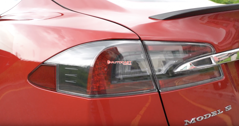 후면부는 LED 테일램프를 사용했고 가운데 테슬라 철자가 두꺼운 크롬 막대를 가로 지르고 있다. 또 트렁크 위쪽에는 속도 안정성을 높여주는 카본 스포일러가 있다. 이는 취향에 따라 장착 여부를 선택할 수 있다. 트렁크는 뒷유리까지 함께 열리는 패스트백 형태다. 용량은 894L이며, 60:40으로 뒷좌석 폴딩이 가능해 필요하면 트렁크를 더 넓게 쓸 수 있다. 아울러 21인치 타이어와 함께 고성능의 상징 빨간색 브레이크 캘리퍼를 끼웠다.