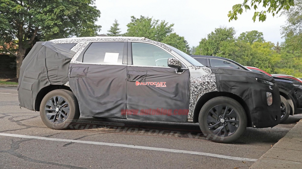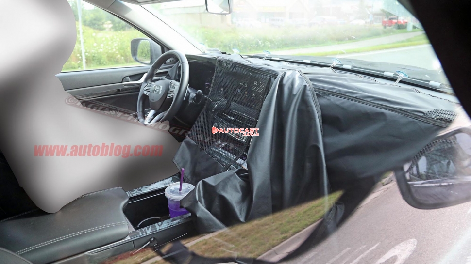 현대자동차가 올 연말 출시할 차세대 대형 SUV의 실내 디자인이 해외에서 포착됐다. 자동차 전문 매체 오토블로그는 해당 차량의 스티어링 휠과 센터페시아 디자인, 컵홀더, 3열 공간 등 주요 실내 모습을 담은 사진을 1일 공개했다. @오토블로그(autoblog)