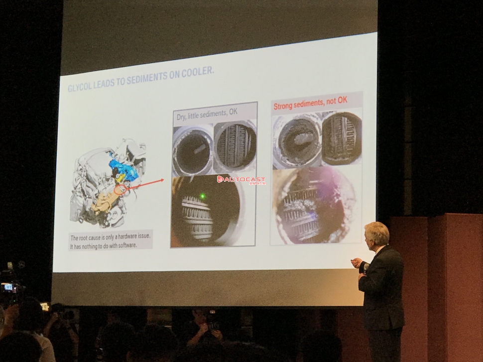 이어 “누수가 있다고 하더라도 모든 차에서 화재가 발생하진 않는다. 불이 나려면 EGR 쿨러 쪽 누수 외에도 추가적인 조건을 충족해야 한다. 예를 들어 주행 거리가 많은 차, 장시간 주행할 경우, 바이패스 밸브가 열린 상태 등이 있다”고 말하며 “근본적인 원인은 하드웨어적인 문제이지 소프트웨어와는 관련 없다”고 강조했다.