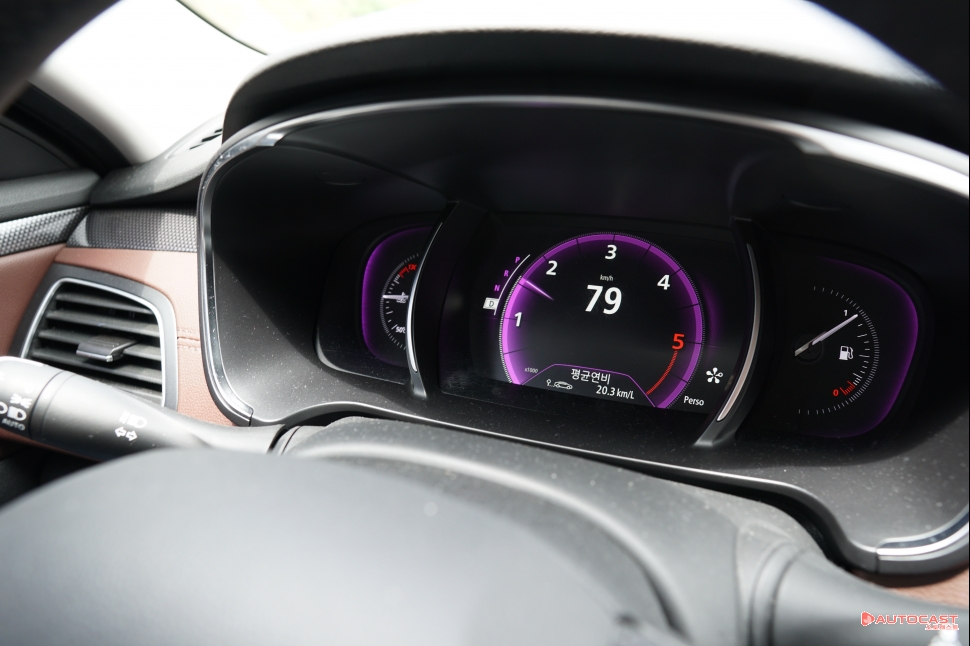 운전대는 제법 큰 편이다. 시트는 어깨 높이가 낮은 편이지만 불편하지 않다. 특히 머리를 넉넉하게 받쳐주는 커다란 헤드레스트가 일품이다. 가장 마음에 드는 부분은 운전대와 계기판의 각도다. 시트와 운전대를 체형에 맞춰 이리 저리 조절하다 보면 운전대가 계기판을 살짝 가리는 경우가 있는데 SM6의 계기판은 살짝 누워 있어 어떻게 조절 하든 가릴 염려가 없다.