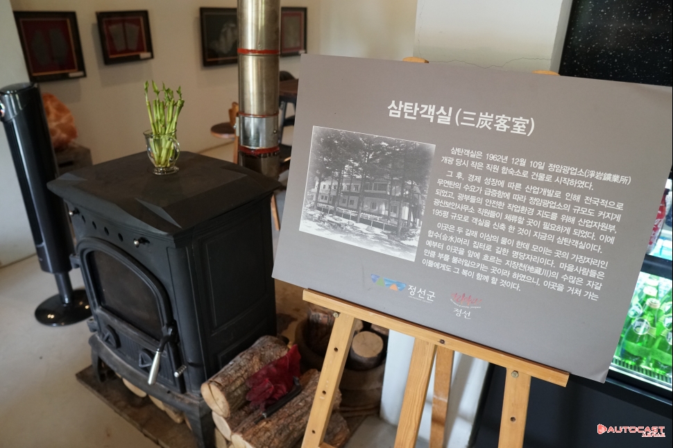 과거 탄광업이 흥했던 시절 함백산은 무연탄 생산 중심지였다. 그래서인지 탄광 도시 고유의 흔적과 감성이 곳곳에 묻어 있다. 길을 따라 오르다 보면 함백산 자락에 삼척 탄좌 시설 일부가 그대로 남아 우뚝 솟아 있다. 도로 옆에 조그맣게 흐르는 계곡은 바위 색깔부터 다르다. 과거 모습은 어땠을까 상상하며 오르다 보니 한 카페가 나왔다. 산장을 연상케 하는 이곳은 광부들의 휴식처이자 잠자리였던 삼탄객실을 개조해 만든 곳이라고. 카페 앞 마당에는 돌 더미와 함께 석탄을 실어 나르던 도구들이 놓여 있다.
