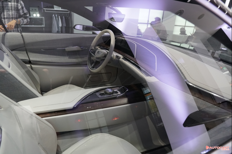 실내의 경우 1열에는 첨단 기술을 대거 적용했다. 2열은 고급스러움과 편안한 승차감에 주안점을 뒀다. 인테리어 전반에 걸쳐 수공예 맞춤 기술로 완성한 디테일과 최상급 소재의 적용으로 캐딜락만의 프리미엄 가치를 전달한다. 특히 운전석 전면에 위치한 3개의 초박형 대형 곡면 OLED 스크린은 계기판과 센터페시아로 구분돼 온 영역을 통합한다. 이를 통해 촉각, 청각 및 동작 인식 등 다양한 채널을 통해 커넥티비티와 조작 편의성의 개념을 새롭게 제시하고 있다.