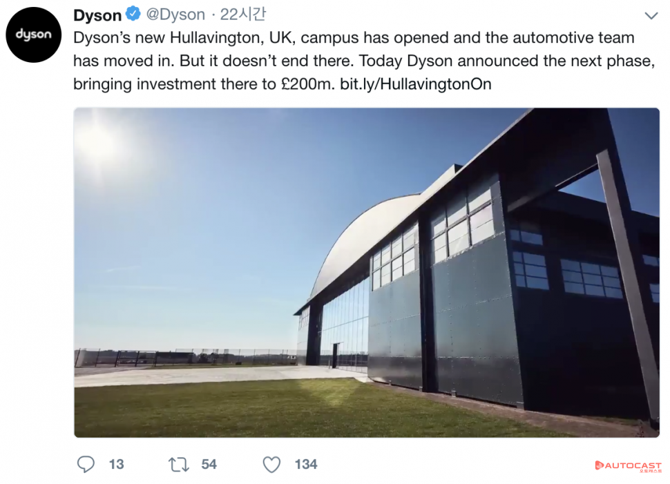 최근 BBC 등 외신에 따르면 다이슨은 잉글랜드 남부 윌트셔(Wiltshire) 지역에 위치한 전기차 연구 센터에 테스트 트랙을 구축하는 등 관련 시설 확대를 위해 1억 1600만 파운드(한화 약 1700억 원)을 추가로 투자할 계획이라고 밝혔다.