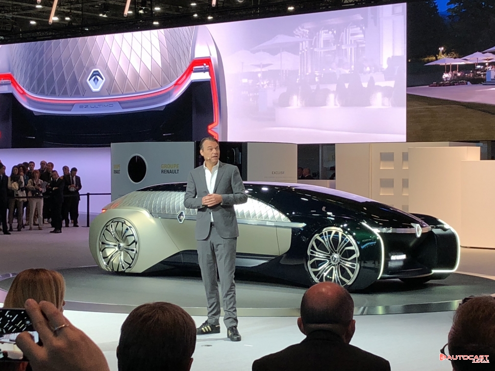 르노는 이날 모터쇼에서 4단계 자율주행 기술을 탑재한 로보 자동차 ‘이지-얼티모(EZ-ULTIMO)’를 선보였다. 이지 얼티모는 르노가 지난 3월 제네바모터쇼에서 선보인 ‘이지-고(EZ-GO)’와 ‘이지-프로(EZ-PRO)’에 이은 세 번째 로보 자동차다. 이들 콘셉트카는 4단계 자율주행기술을 탑재한 공유 모빌리티로 각각 일련의 콘셉트를 지니고 있다. 르노에 따르면 이지-고는 도시 일상용, 이지-프로는 배송용, 이지-얼티모는 프리미엄 공유 모빌리티다.