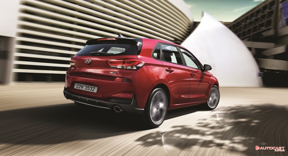i30 N 라인은 고성능 모델의 디자인 부품을 대거 적용했다. 전면에는 블랙 메시 타입의 N 라인 전용 라디에이터 그릴, 프론트 립과 휠 에어커튼 가니쉬 등으로 전용 범퍼 디자인을 적용했다. 또 블랙베젤 헤드램프, 가로 배치형 LED 주간주행등을 더했다.