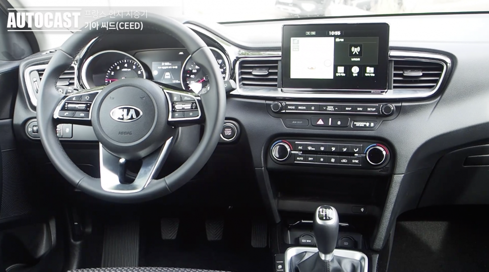 인테리어는 기아차에서 흔히 보던 레이아웃과 디자인으로 구성돼 있다. 디테일이 조금씩 다르다. 먼저 센터페시아 상단의 돌출형 디스플레이는 네모반듯한 직사각형의 8인치 터치스크린이다. 기아차 국내 모델들에 적용된 사다리꼴 형태의 디스플레이와 달리 베젤이 얇고, 또 베젤과 화면의 구분이 희미해 몰입도가 높다.