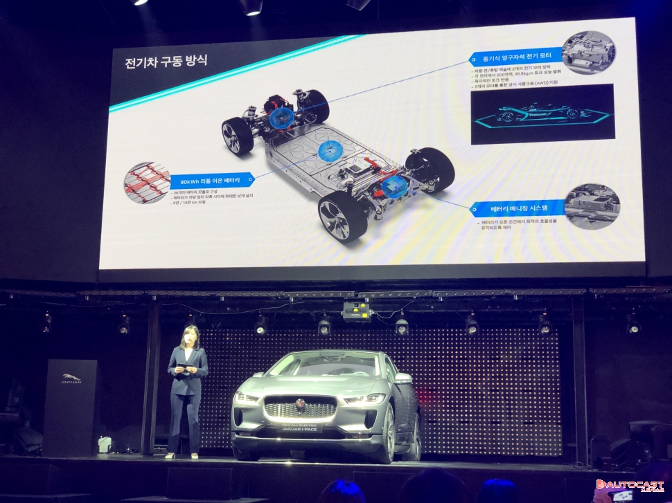 재규어랜드로버코리아는 i-pace를 공식 출시했다. i-pace는 정지상태에서 시속 100km/h까지 불과 4.8초 만에 가속하는 성능을 갖췄다. 또, 500mm의 도강능력도 갖춰 기존 전기차와의 차별화를 강조하고 있다. 국내 출시 가격은 1억1040만 원으로 기존 전기차 대비 매우 고가에 속한다. 하지만 보조금을 받게 되면 1억 원 아래로 가격이 내려온다.