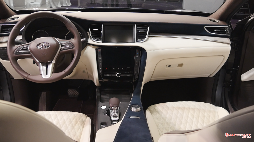 외관의 경우 인피니티 고유의 디자인 요소인 더블 아치 프론트 그릴, 초승달 모양의 C 필러, 사람의 눈에서 영감을 받은 LED 헤드램프, 브랜드 최초로 적용된 클램쉘 타입의 보닛을 적용했다. 실내에는 울트라 스웨이드, 세미 애닐린 가죽 등의 프리미엄 소재를 사용하고 핸드메이드 방식으로 세심하게 검수 및 마감했다.