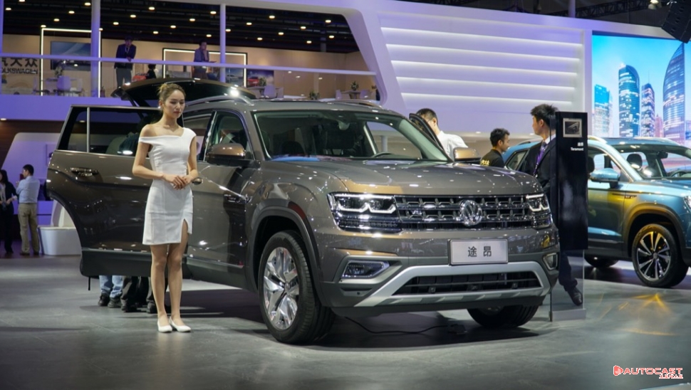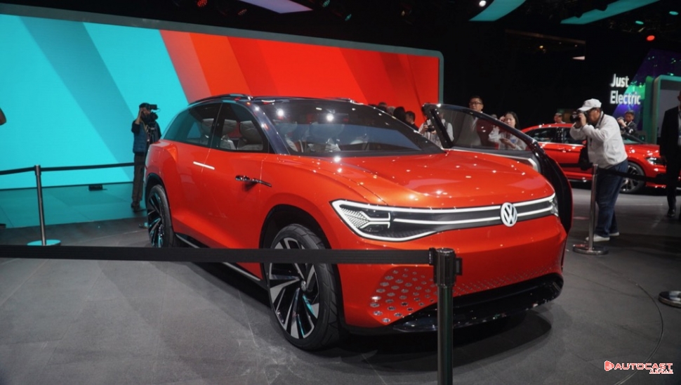 2019 상하이오토쇼 폭스바겐의 부스. 정면에서 왼쪽에는 대형 SUV 테라몬트 X가 자리잡았다. 메인 무대에는 컨셉트카 I.D룸즈(Roomzz)가 있다. SUV의 쿠페 컨셉트와 SMV 컨셉트도 공개했다. 중국에서 폭스바겐의 고향과도 같은 상하이에서 SUV를 중심으로 대거 신차를 출시했다.