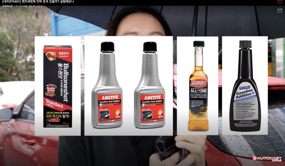 오토캐스트는 올 초 엔진세정제가 실제로 제 역할을 하는지 궁금증을 해소하기 위해 [내차관리#01]를 통해 엔진세정제 효과를 실험했다. 직접 정비소를 찾아가 쏘나타 GDI 모델을 대상으로 약 한 달 간 실험을 진행했다. 세정제가 때를 얼마나 벗겨내는지 내시경 카메라를 사용해 엔진 내부를 확인했다. 이 때 엔진 세정제는 국내에서 가장 많이 알려진 불스원샷을 사용했다.