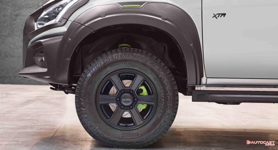 D-맥스 XTR은 전용 페더 서스펜션, 탁월한 보디 키트, 250mm 지상고, 퍼포먼스 프런트 브레이크디스크, 피렐리 스콜피온 올터레인 플러스 타이어를 신은 17인치 알로이휠이 적용되어 익스트림 오프로드 주행 능력을 자랑한다.