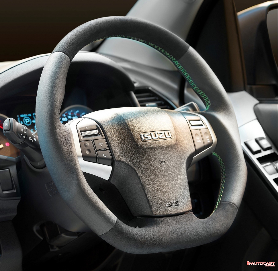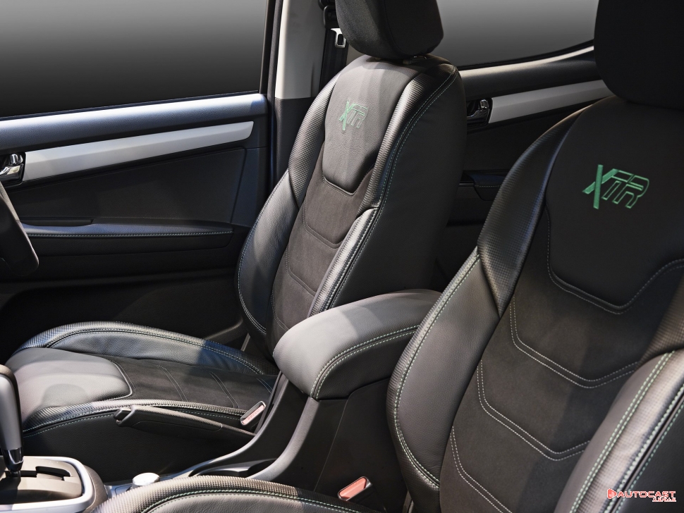 D-맥스 XTR의 내부에서는 히티드 프런트 스포츠 시트, 가죽, 스웨드와 카본 커버, 사이드 볼스터에 적용된 그린 색상 스티치를 확인할 수 있다. 이외 XTR 로고가 앞좌석 모든 시트의 백레스트와 리어 센터 헤드레스트에 적용되어 있다.