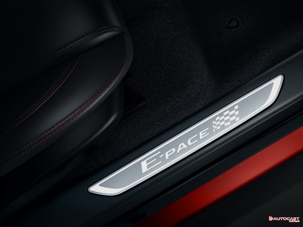 사용자가 도어를 열면 체커드 플래그 트래드플레이트를 만나볼 수 있으며 내부는 에보니 그레인드 가죽 커버가 붉은 색상 스티칭으로 적용되어 있다. 전자동 조절식 히팅 프런트 시트, R-다이내믹 브랜드 스티어링 휠, 검은색상의 기어시프트 페들과 에보니 모자인 헤드라이너가 패키지에 포함되어 있다. 스페셜 에디션 E-PACE는 12.3인치 TFT 디스플레이, 애플 카플레이와 안드로이드 오토가 연동되는 10인치 인포테인먼트 시스템, 키리스 엔트리와 전자동 테일게이드가 적용됐다.