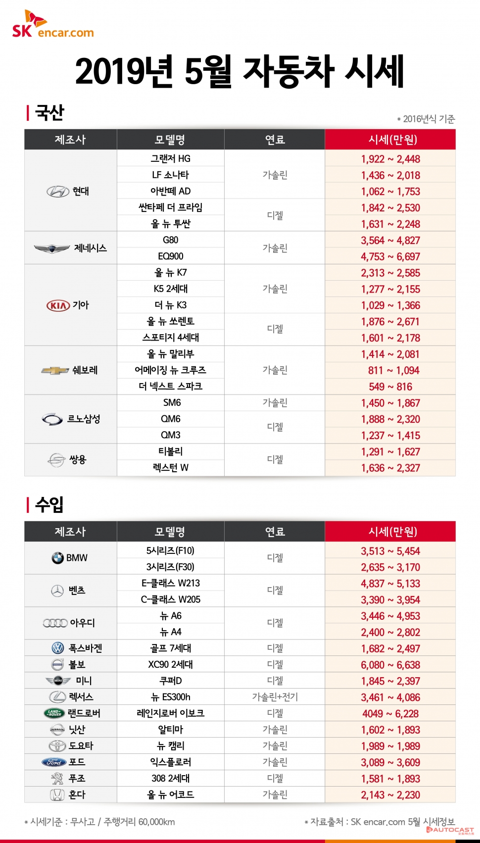 SK엔카닷컴의 5월 첫 주 자동차 시세에 따르면 주요 인기 차량 가격의 전월 대비 평균 약 1.37% 상승했다. 특히 SUV의 시세 상승이 두드러졌다.