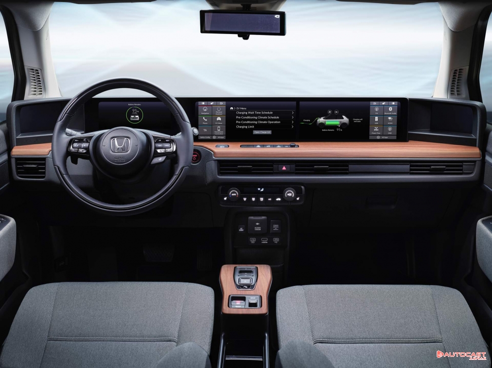 혼다 e 모델의 내부는 라운지 느낌을 갖고 있다. 워크-쓰루 플랫 플로어(바닥이 평평한)와 후방의 상황을 디지털 방식으로 영상화 시켜주는 리어-뷰 사이드 미러와, 이와 연동되는 거대한 듀얼-스크린 수평 디스플레이가 탑재된다.