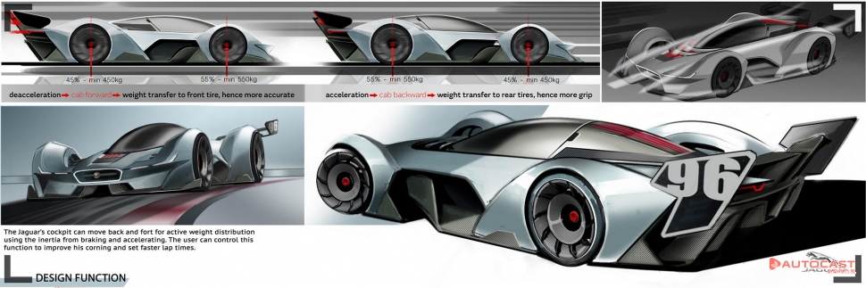 GT 비전 C-X55라고 이름 붙여진 재규어 브랜드 컨셉트 모델은 테마 프로젝트로 만들어졌다. 이 컨셉트 모델은 실제로 트랙에서 달리는 모습이 상상되지 않을 정도로 혁신적인 디자인을 갖췄다.