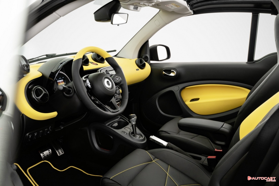 외장 색상은 첫 번째 스마트의 모습을 연상케 하며 브릴리언트 옐로우가 차량의 앞쪽에 그리고 뒤쪽에 매트 블랙의 색상이 적용되었다. 도어와 휠 센터캡에는 #21이라는 그래픽이 적용되어 있다.