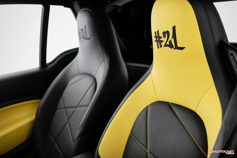 인테리어도 외관 디자인과 마찬가지로 비슷한 조합이 적용됐다. 대시보드, 스티어링 휠, 드라이버 시트, 그리고 도어 판넬이 검정색과 노란색으로 반반씩 적용됐다. #21 그래픽이 기어시프트 레버와 헤드레스트, 핸드브레이크 레버에 적용되어 있으며 ‘원 오브 21(One of 21)’이라는 문구가 측면에, 그리고 ‘파이널 컬렉터 에디션(Final Collector’s Edition)’이라는 문구가 플로어 매트에 새겨져 있다. 도어 실에는 콘스탄틴 그리치치 디자인의 #21 그래픽이 적용되어 있다.