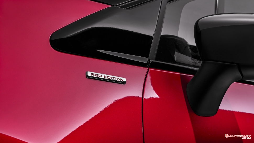 외부에는 소닉레드의 보디컬러에 블랙 루프를 적용했고 전용 17인치 블랙 투톤 알로이휠과 배지를 적용했다. 또, RE 트림 이상에서 기본 탑재하는 LED 퓨어비전 헤드램프와 다이내믹 턴 시그널을 조합했다.