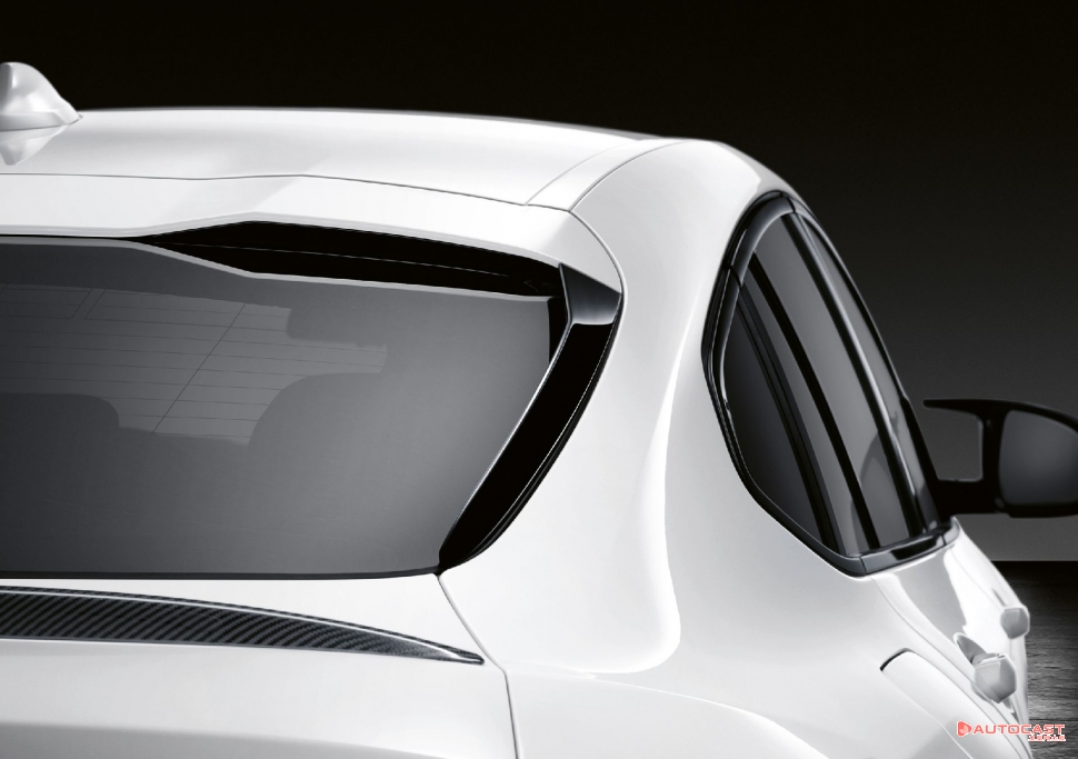 M 퍼포먼스 카탈로그를 구성하는 외부 요소는 모두 탄소 섬유로 구성되어 있으며, 새로운 라디에이터 그릴 서라운드, 맞춤형 에어 인테이크, 그리고 M 퍼포먼스 컬러의 레터링과 프리미엄 도어 실이 적용된다.