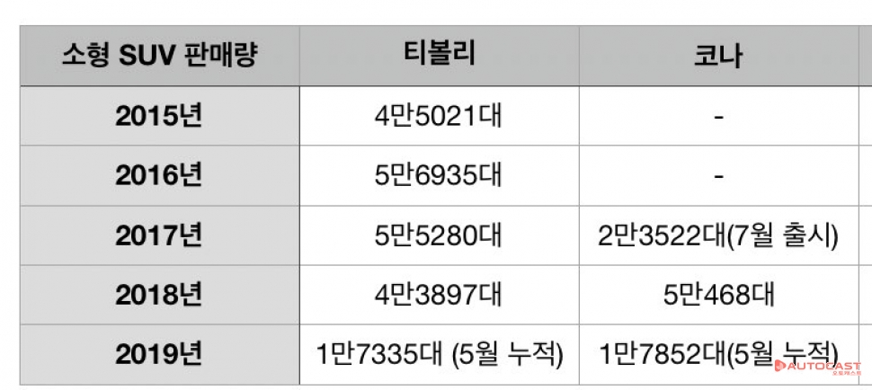 쌍용자동차 정무영 상무는 “티볼리는 쌍용자동차 월간 판매량의 40%를 차지할 정도로 중요한 모델이고 독특하게도 약 70%의 소비자가 여성인 차종”이라며 “현대자동차의 코나 판매량에서 전기차 부분을 제외하면 오히려 티볼리의 판매량이 더 많아 세그먼트 1위로 볼 수 있다”고 말했다. 올해 5월까지 쌍용자동차 티볼리는 1만7335대를 판매했고 현대자동차 코나는 1만7852대를 판매했다.