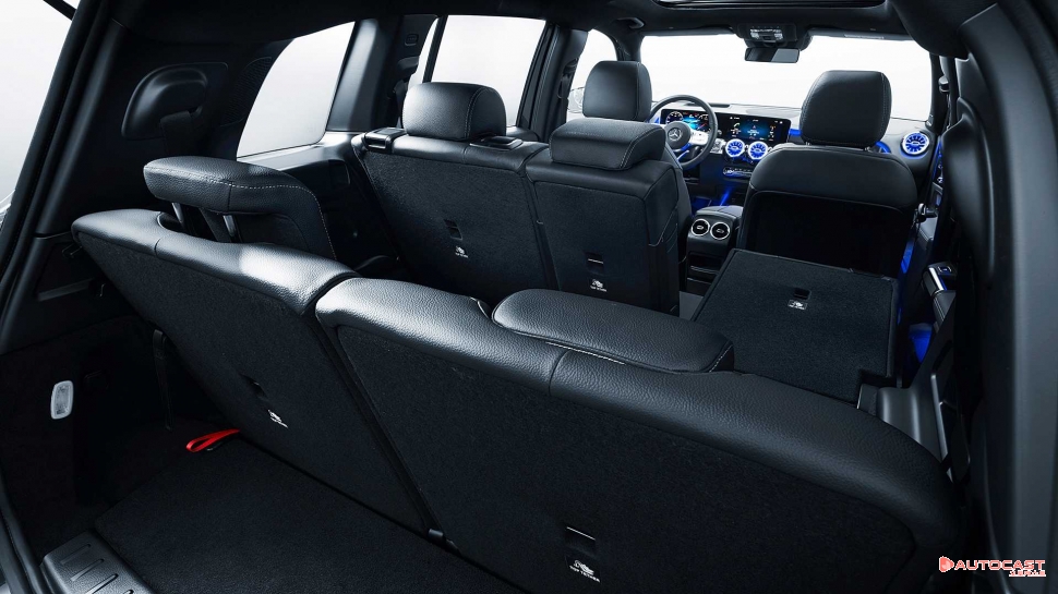 3열에 설치된 시트는 아래로 접어 넣을 수 있다. 또한 3열에도 두 개의 컵홀더, USB-C포트를 비롯해 여러 가지 편의 장비들과 사이드 윈도우 에어백도 적용된다. 7인승 구조가 필요 없다면 GLB 5인승 모델이 마련되어 있다. 2열 좌석은 40:20:40 구조로 폴딩되어 조절이 가능하다.