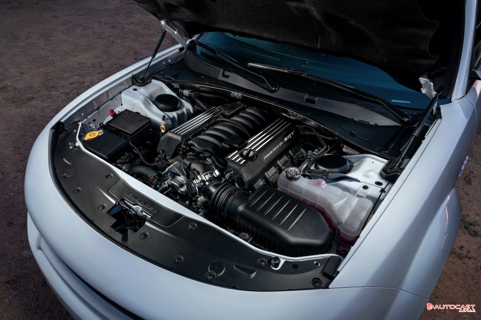 차저 스캇 팩 와이드 바디는 자연흡기 6.4리터 헤미 V8 엔진을 얹었다. 최고출력 485마력을 뿜어낸다. 8단 자동 변속기와 짝을 이루며 파워는 뒷바퀴에 전달된다. 이러한 셋업은 이 차로 하여금 4.3초의 제로백이 가능하게 해준다.