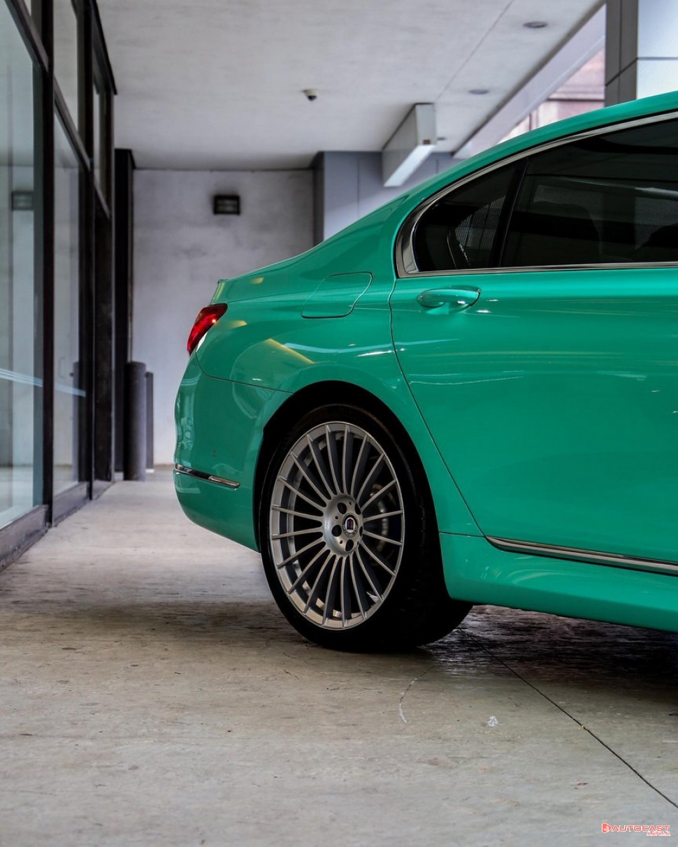 거의 롤리팝 룩을 연상케하는 이 색상은 사실, 표면적으로 이 7시리즈의 가장 두드러진 특징이다. 다만, 다른 곳에서는 알피나의 대표적인 멀티 스포크 알로이 휠과 여러 가지 다른 모델들을 여기저기서 뽐내고 있다. 불행하게도, 소셜 미디어에서 이 민티 B7을 공유한 알피나와 BMW 뉴욕은 모두 내부 이미지를 공개하지 않았지만, 실내 공간에 거의 모든 표면에 하얀색 메리노 가죽을 적용했다고 말했다.