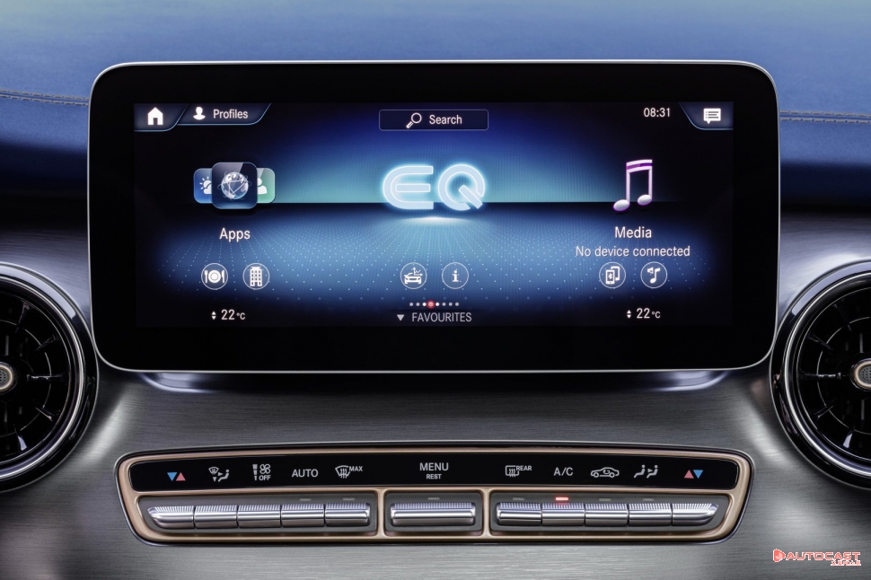 콘셉트 EQV로 지난 제네바 모터쇼에서 처음 공개됐다. 당시에도 양산 모델에 가까운 모습이었다. 전기 파워트레인으로 최고출력 204마력, 362Nm의 최대토크를 프런트 액슬에 전달한다. 최고속도는 160km/h이다.