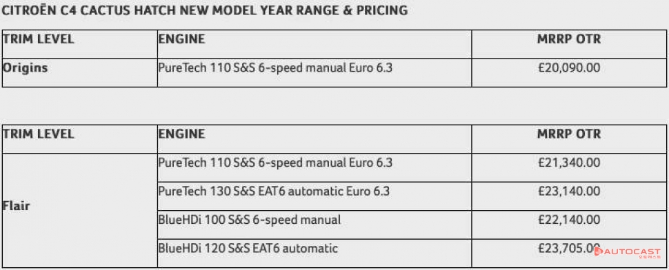 시장 요구에 따라 시트로엥 영국은 기본형 모델인 필(Feel) 트림 레벨의 C4 칵투스 해치백을 라인업에서 빼기로 했다.