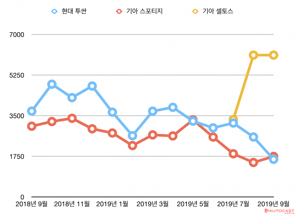 현대자동차의 한 딜러는 “투싼은 풀체인지를 앞둔 모델인 데다 셀토스와 같은 소형 SUV의 인기가 지속되면서 연식변경 모델을 내놔도 인기를 회복하기 여러운 상황”이라고 토로했다.