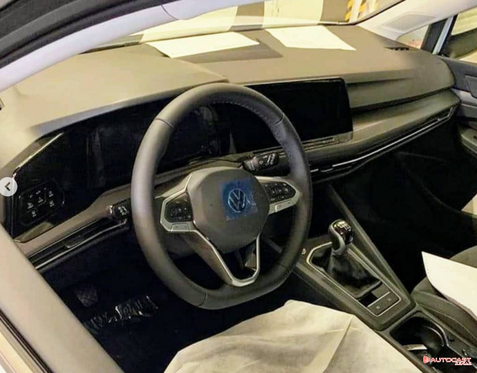15일 유출된 폭스바겐 8세대 골프의 모습은 최근 등장한 아테온 등에서 보여줬던 디자인과 상당부분 유사하다. 전형적인 3스포크 형태의 스티어링휠을 탑재했고 오른쪽에는 기어노브가 붙었다.