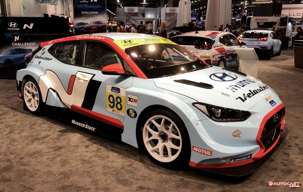 N 퍼포먼스 부품을 달아 공격적인 모습으로 꾸민 벨로스터 N 퍼포먼스 카도 전시했다. 벨로스터 N 레이싱카도 두 대 전시했다. 커다란 화면에는 지난달 11일 미쉐린 레이스웨이 로드 애틀랜타에서 열린 ‘2019 미쉐린 파일럿 첼린지’ TCR 클래스에서 우승을 차지한 벨로스터 N TCR 머신을 선보였다.