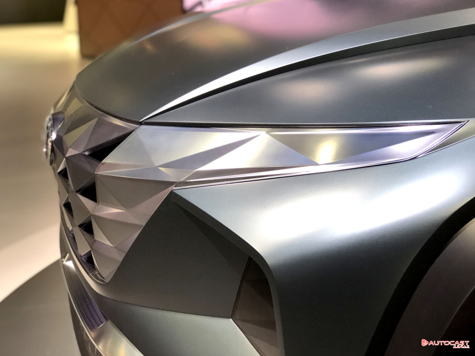 공개된 ‘비전 T’는 플러그인 하이브리드 구동계를 장착한 SUV 컨셉트카다. 이날 ‘비전 T’ 프레젠테이션을 위해 스탠드에 선 현대 디자인센터장 이상엽 전무는 “비전 T도 현대의 센슈어스 스포티니스(Sensuous Sportiness) 철학을 잘 반영한다. 그랜저 페이스리프트에서 보여준 상징적인 라이트 디자인도 더욱 근사하게 적용했다”라고 말했다. “그릴과 헤드램프, 본넷의 경계를 없앤 유기적인 디자인을 보여준다”라며 라 필 루즈 컨셉트카와의 연결고리를 설명했다.